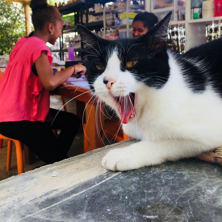 Oh hey! I am DJ. I have been a pet of Serena for two years. I have seen a lot, which is why I am going to share a little of what I know with you before I take a nap. Wandering around Serena’s Art Factory is something I love doing. I find so many comfortable areas to take nice naps or simply to sit or lie and observe what’s going on. One thing I enjoy watching is how the painters come to Serena’s Art Factory to hand in the Chichis® they finished painting, which happens usually on Mondays and Thursdays.