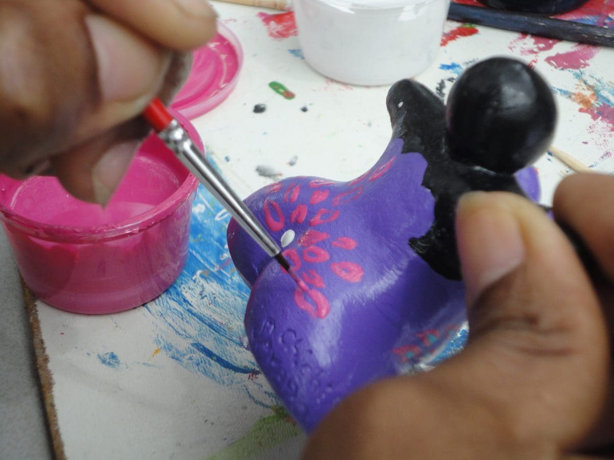 Xiomaraha is always happy when she is painting on a fresh sculpture and made a special place where she sits and paints.