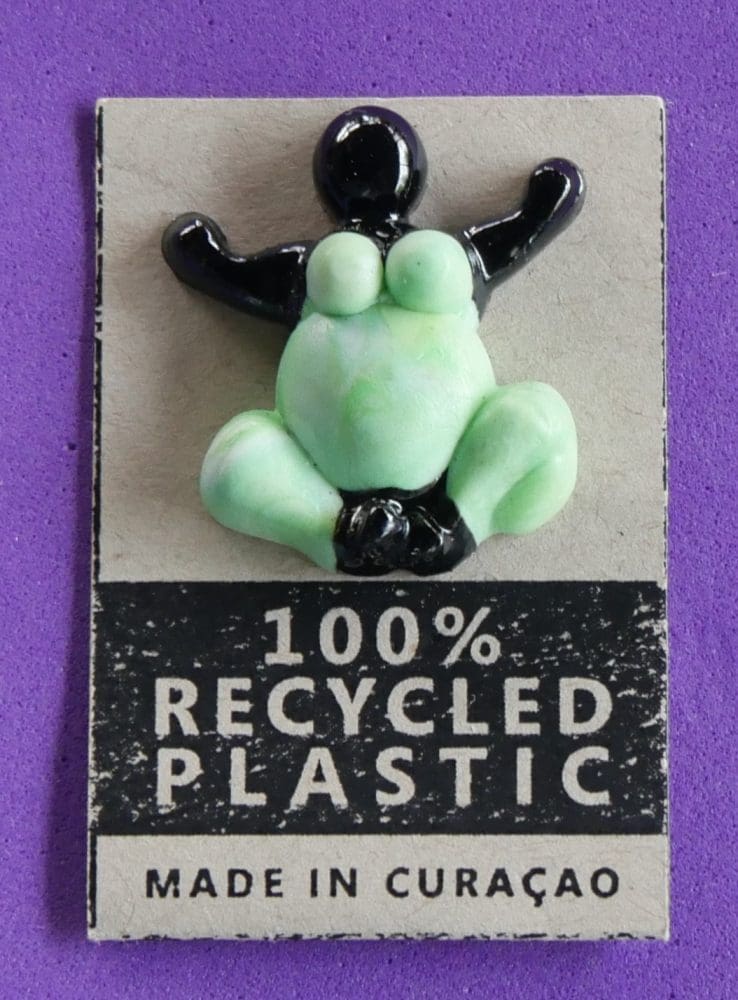 Pin Green Chichi Pin Price: Naf 18 / 10 USD$**** Excluding Shipping costsDimension: (WxH) 2 x 2.5 cmMaterial: 100% recycled plastic, stainless steel pin, two-component black paint Buy now ← Pin Blue Pin Purple → Buy now