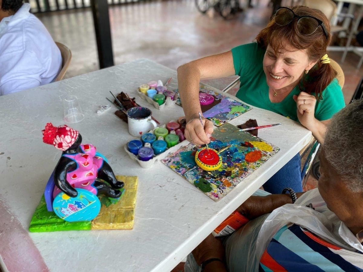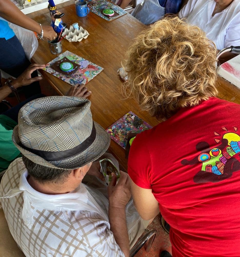 Serena and Ineke guided the group along, we painted smiley faces. We wanna thank all our ‘Artist of the day’ and the peaceful and professional personnel. We were glad to be part of this and could do something back for the community of Curaçao.