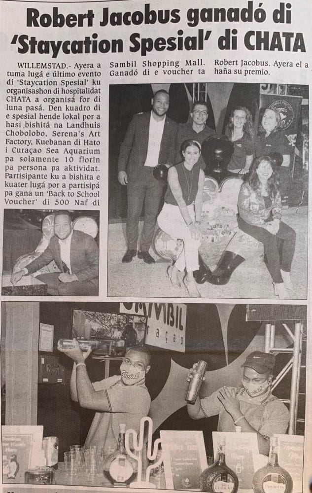 CHATA startte deze campagne begin Juli om het vakantie gevoel in eigen land te stimuleren. Alle eilandbewoners kregen de kans om 4 attracties te bezoeken voor 10 naf per persoon per locatie. Bij iedere lokatie; Serena’s Art Factory, Curacao Sea Aquarium, Hato Cave & Landhuis Chobolobo, werd er een stempel uitgegeven. Bij een volle spaarkaart konden bezoekers meedingen naar de prijs.