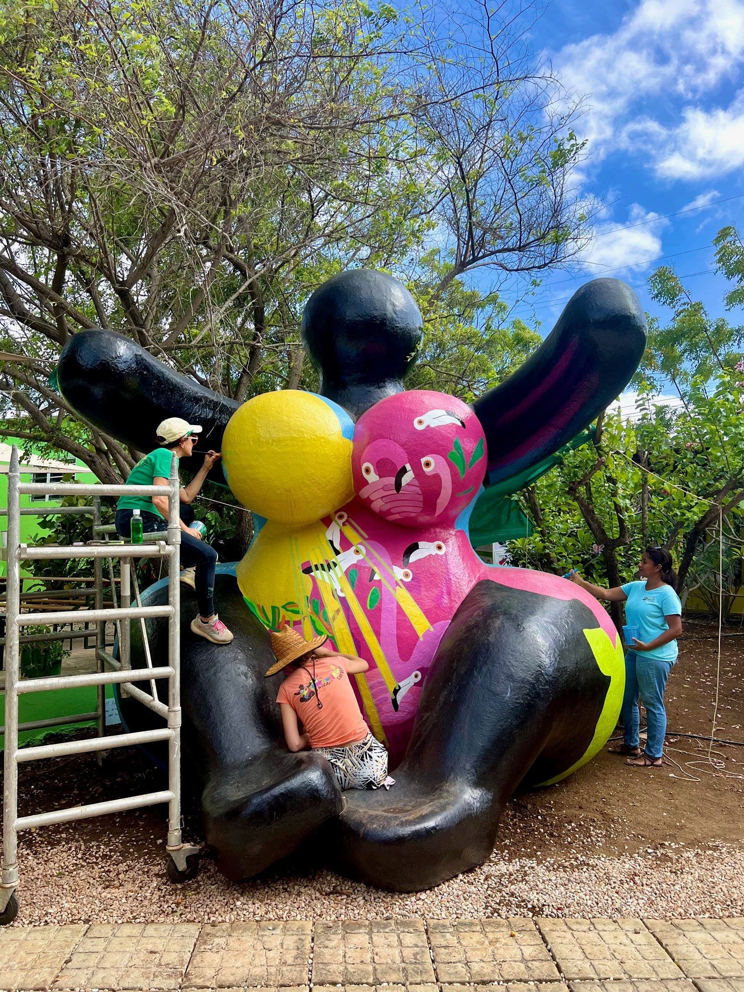 De in Berlijn geboren kunstenares Thea Parthenos heeft de leiding over het kleurrijke ontwerp van deze nieuwste Chichi®. Thea, de vrijgevochten multimediakunstenaar, is een van Serena’s naaste co-creators sinds ze haar eerste stage liep bij Serena’s Art Factory in 2013. Ze wilden allebei een betekenisvol concept creëren en tegelijkertijd het bekende landschap van Curaçao integreren. Het concept is in eerste instantie geïnspireerd door de Art Nouveau-stijl, die nog steeds zichtbaar is in de abstracte en vloeiende elementen, ronde vormen en elegante maar ook krachtige structuur. De herhaling van de boogstructuren is het belangrijkste element waarop we ons hebben gericht, waarbij elk deel en hoogtepunt van het eiland met elkaar wordt verbonden. Het symboliseert de bruggen en eenheid die we in onze toekomst gebouwd willen zien.