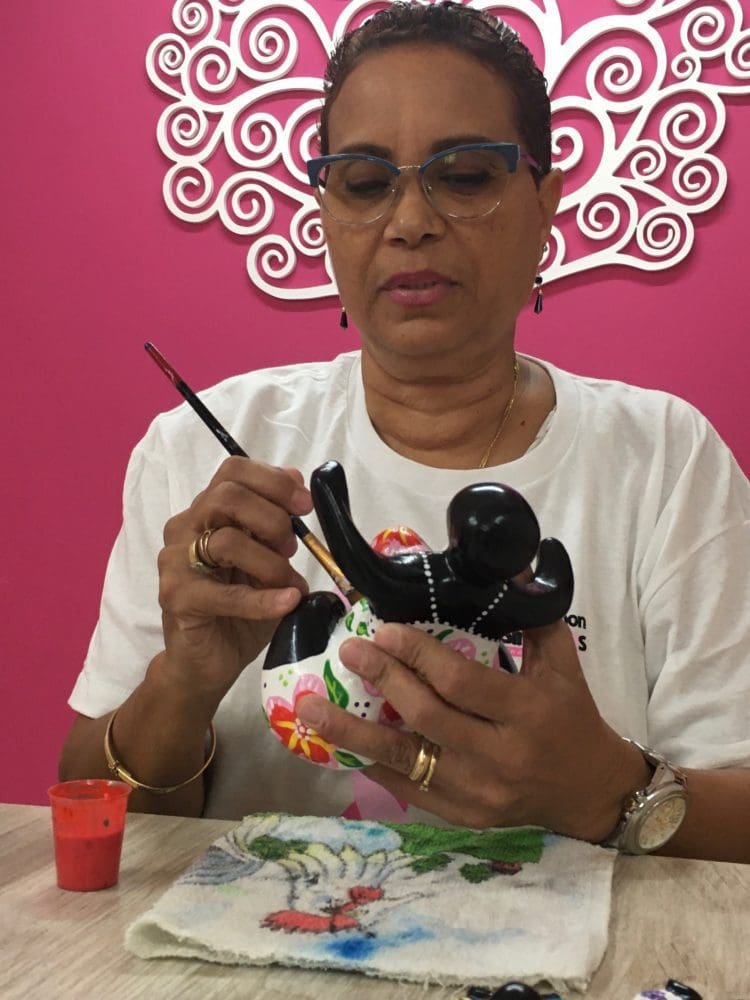 In addition to painting Chichi®’s, I am Teacher Handicraft and I am a volunteer at Fundashon Sinta Ros, a foundation for women who have conquered breast cancer. I also give Macramé workshops at Ackerman. Macramé is a handicraft technique where you tie various threads together and, for example, make a bag or plant hanger.